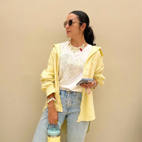 Camiseta para mujer en color blanco con estampado de corazón. Horma regular fit, cuello redondo, elaborada en algodón. Ideal para crear looks versátiles y femeninos. Diseñada y confeccionada en Colombia.